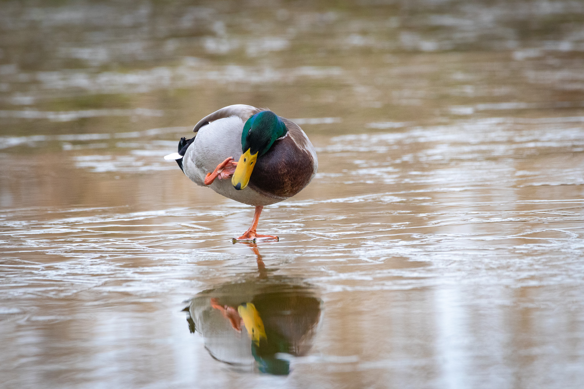 Ente kratzt sich