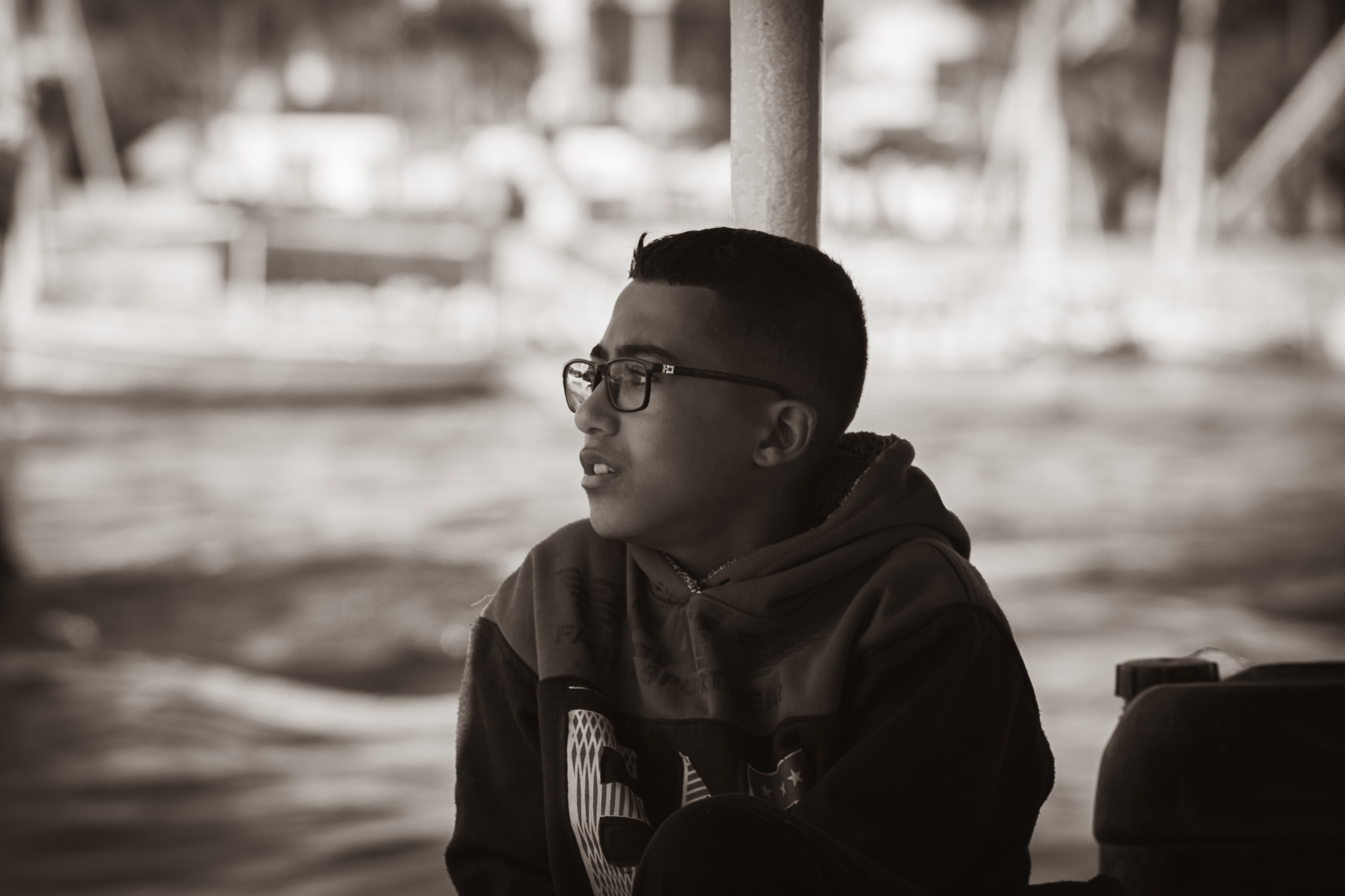 In Gedanken versunken - Junge auf dem Boot